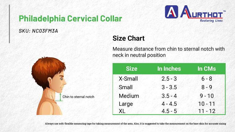 Aurthot Philadelphia Collar is used to prevent neck flexion (forward movement), extension (backward movement) or rotation (sidewards movement) of the cervical spine.